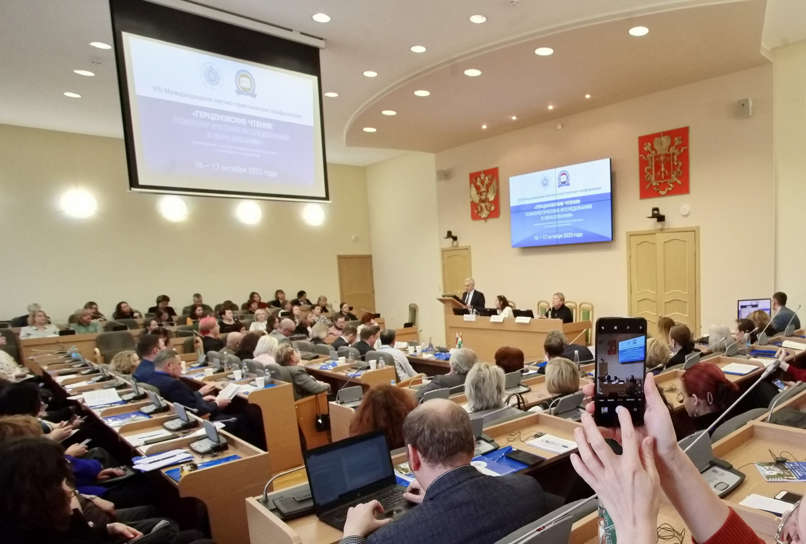Пленарную сессию открыл ректор РГПУ им. А. И. Герцена Сергей Тарасов: «100 лет психологической подготовки в Герценовском университете — это уникальный путь становления и развития профессиональной школы, которая подготовила тысячи специалистов, успешно работающих в России и за ее пределами. Институт психологии сегодня является одним из ведущих подразделений нашего университета, осуществляет подготовку по всем психологическим направлениям, включая подготовку психологов, педагогов-психологов, клинических психологов и психологов служебной деятельности. На его базе открыты четыре диссертационных совета. Особенность научных исследований института и его научных школ заключается в умении интегрировать все исторически сложившиеся в нем направления и продолжать их в современном ключе, отвечая вызовам времени. Герценовский университет определил профессиональное становление большого числа крупных ученых-психологов, работавших впоследствии во многих вузах России. Наше наследие — это сочетание традиций и инноваций, продолжение которых мы видим в современных исследованиях и образовательных практиках».