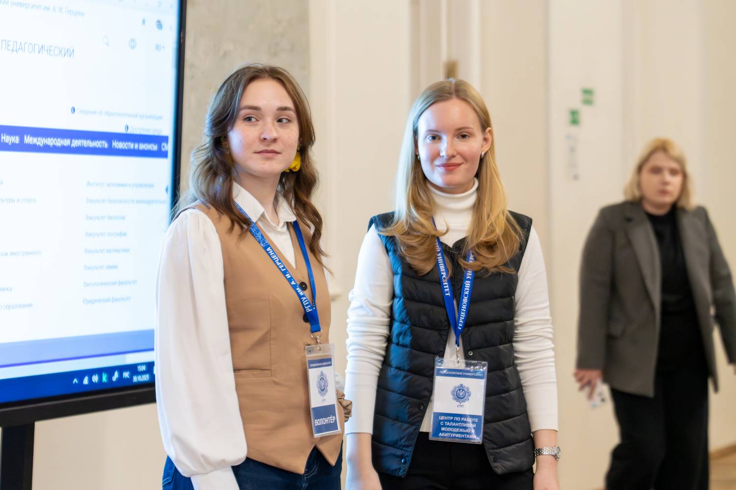 Директор центра по работе с талантливой молодежью и абитуриентами Татьяна Гдалина рассказала об образовательных программах, особенностях приёма и индивидуальных достижениях, благодаря которым абитуриенты могут получить дополнительные баллы при поступлении. Она подчеркнула, что в РГПУ им. А. И. Герцена более 100 направлений подготовки, более 160 программ бакалавриата и специалитета и не меньше программ магистратуры. Татьяна Гдалина добавила, что студентам предоставлены широкие возможности для самореализации во внеучебной деятельности: на базе университета действуют многочисленные творческие, спортивные и волонтёрские объединения.