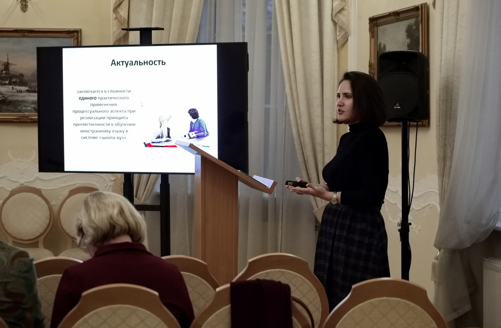 На пленарном заседании участники обсудили взаимосвязь теории и практики обучения иностранным языкам, перспективы профессионального развития педагогов в области искусственного интеллекта и преодоление психолого-педагогических рисков использования ИИ. Метаязык современной методической науки стал ключевым в обсуждении.