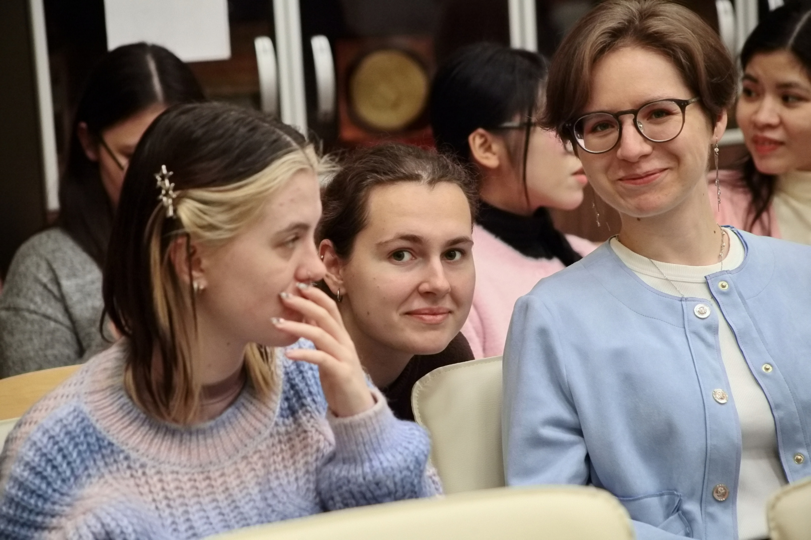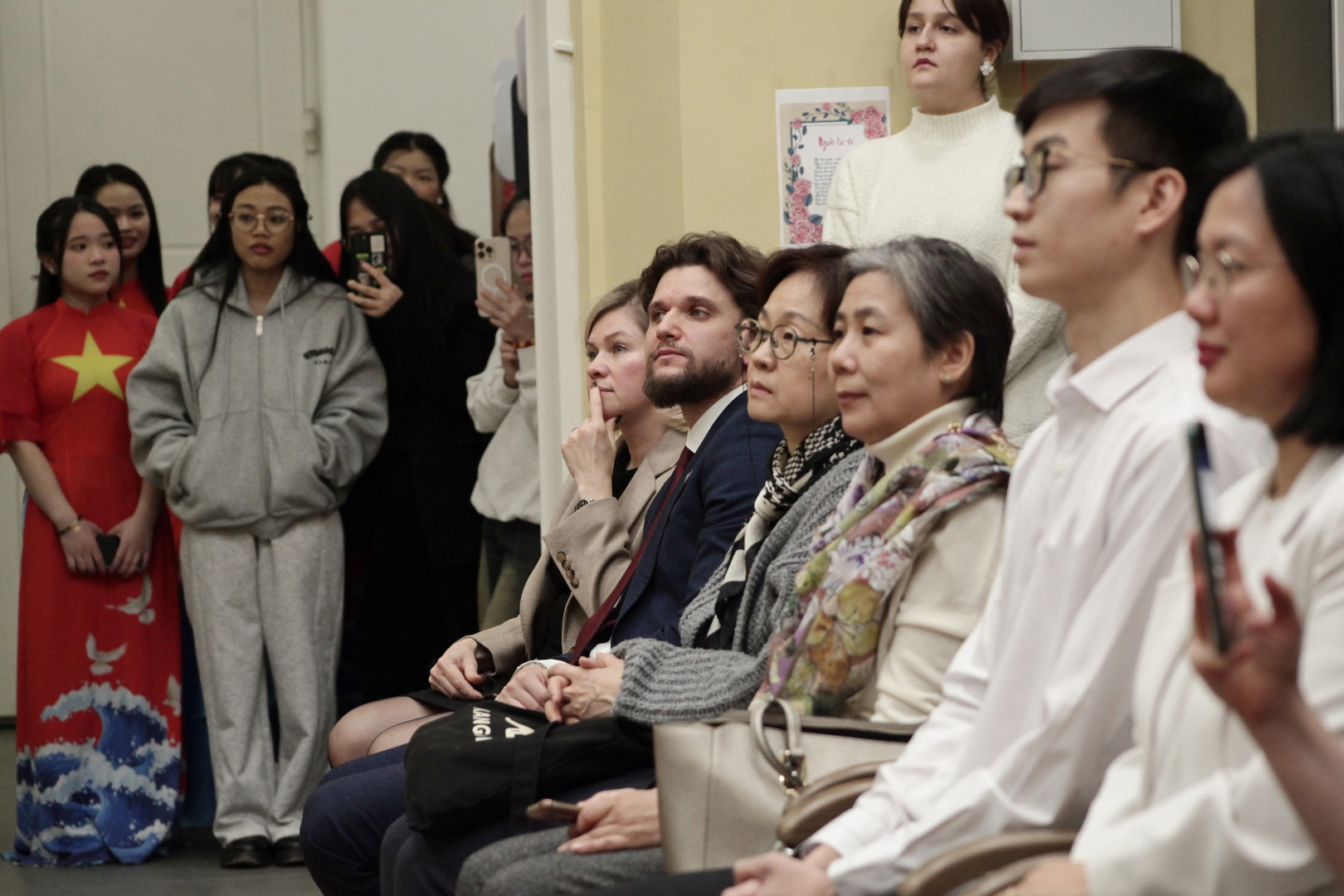 К участникам обратился директор центра интернационализации и работы с иностранными обучающимися Арсений Косяк: «Праздник, который стал поводом для нашей встречи, — действительно прекрасная возможность в очередной раз поблагодарить педагогов за их непростой и важный труд, тем более, что вчера мы отметили День преподавателя высшей школы. Грядущий 2026 год будет посвящен сотрудничеству России и Вьетнама в сфере науки и образования. В Российско-Вьетнамском культурном центре пройдет множество мероприятий, на которых мы будем рады видеть студентов, сотрудников и гостей вуза». Он также выразил благодарность за организацию мероприятия директору центра Татьяне Арсеньевой.