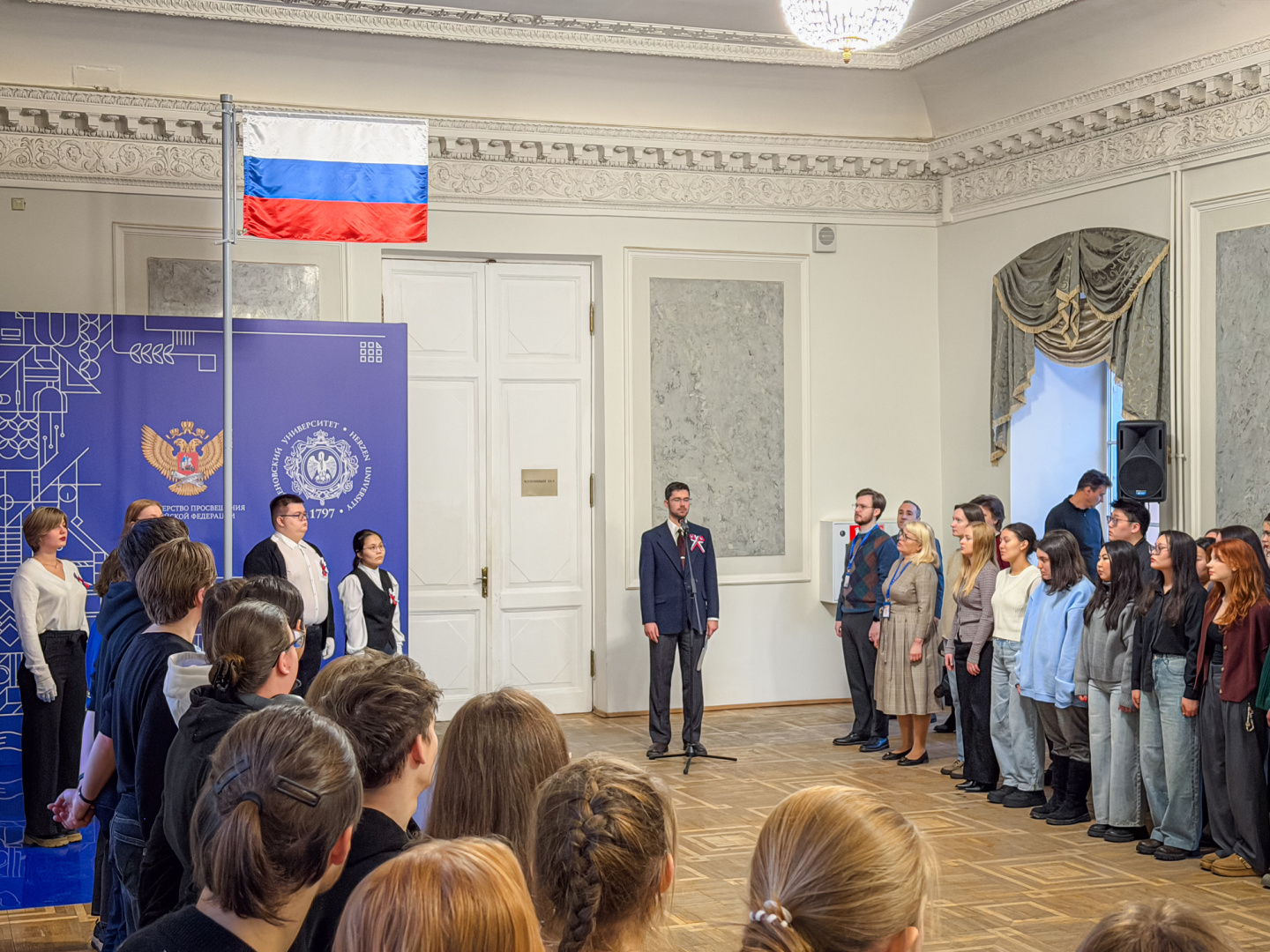 Новая рабочая и учебная неделя в РГПУ им. А. И. Герцена началась с традиционной церемонии поднятия российского флага.