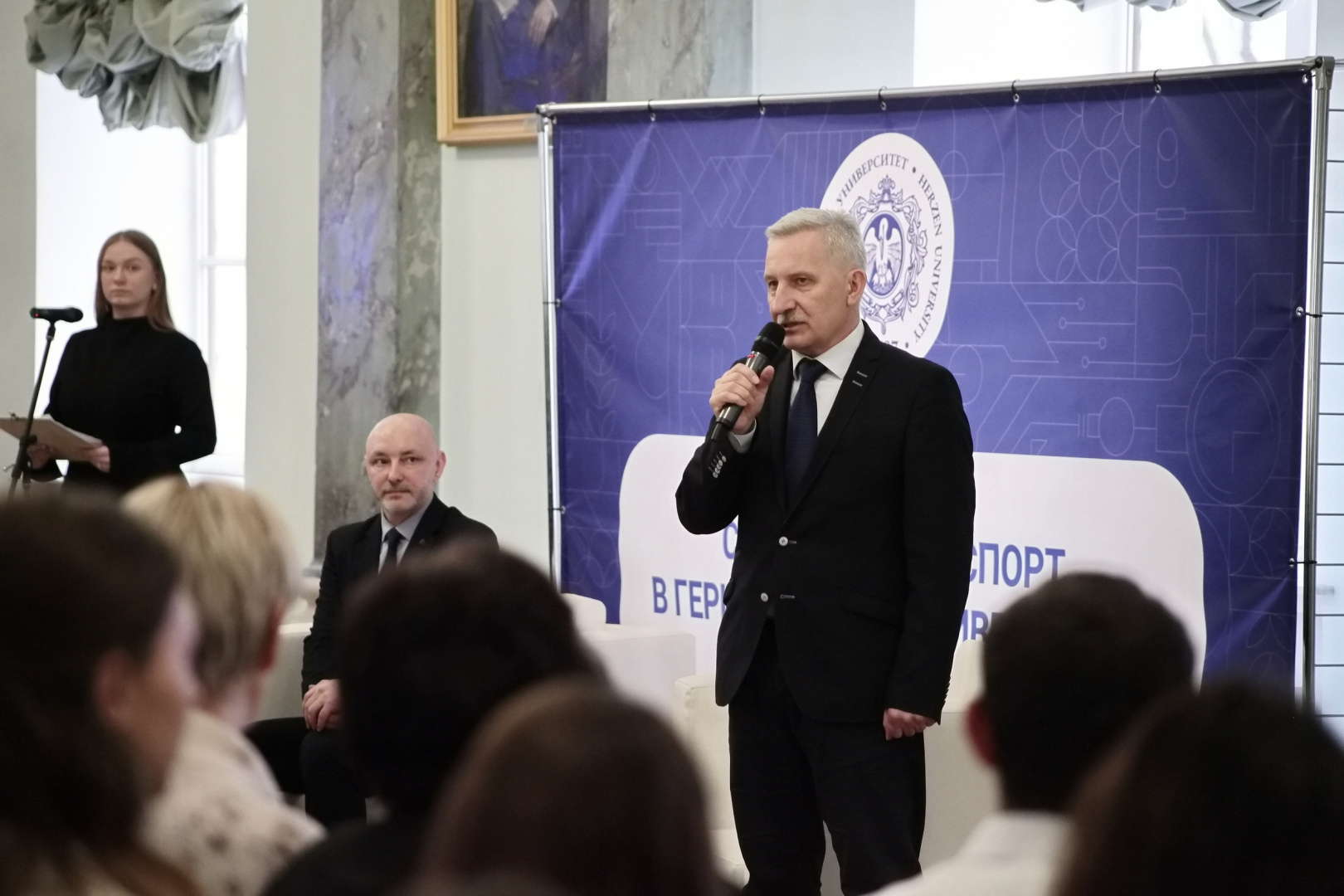Директор института физической культуры и спорта Александр Фокин рассказал, что в вузе учрежден знак «Спортсмен-герценовец» с образом Александра Дитятина — выдающегося спортсмена, имя которого связано с Герценовским университетом. Знак будет вручаться ежегодно за высокие спортивные достижения.
