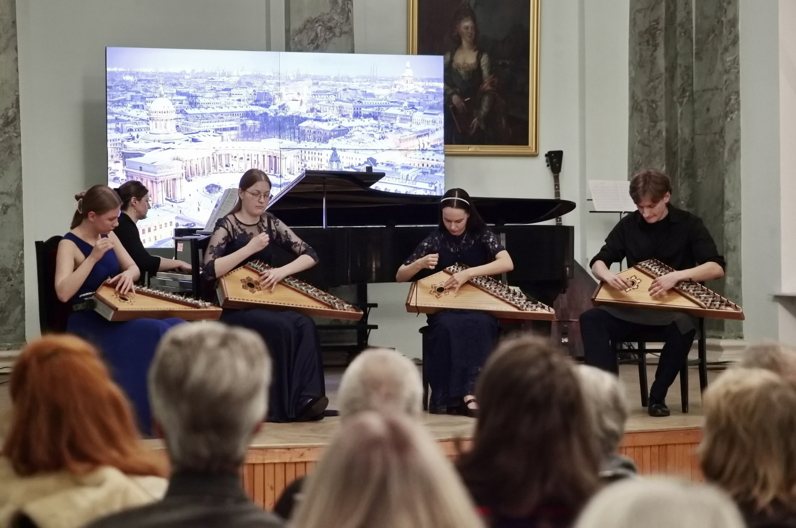 На сцене выступили музыкальные коллективы консерватории: ансамбль домристом имени И. И. Шитенкова, ансамбль гусляров, ансамбль балалаечников и ансамбль мандолинистов. Вокальные партии исполнила Виктория Павлова, партии фортепиано — лауреат международных конкурсов Светлана Коннова.