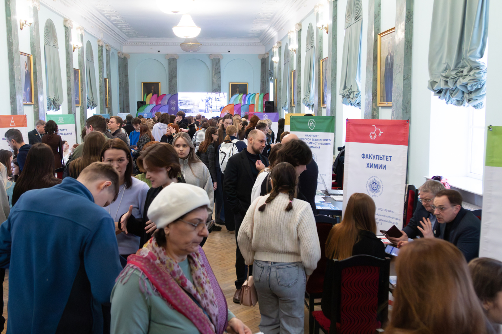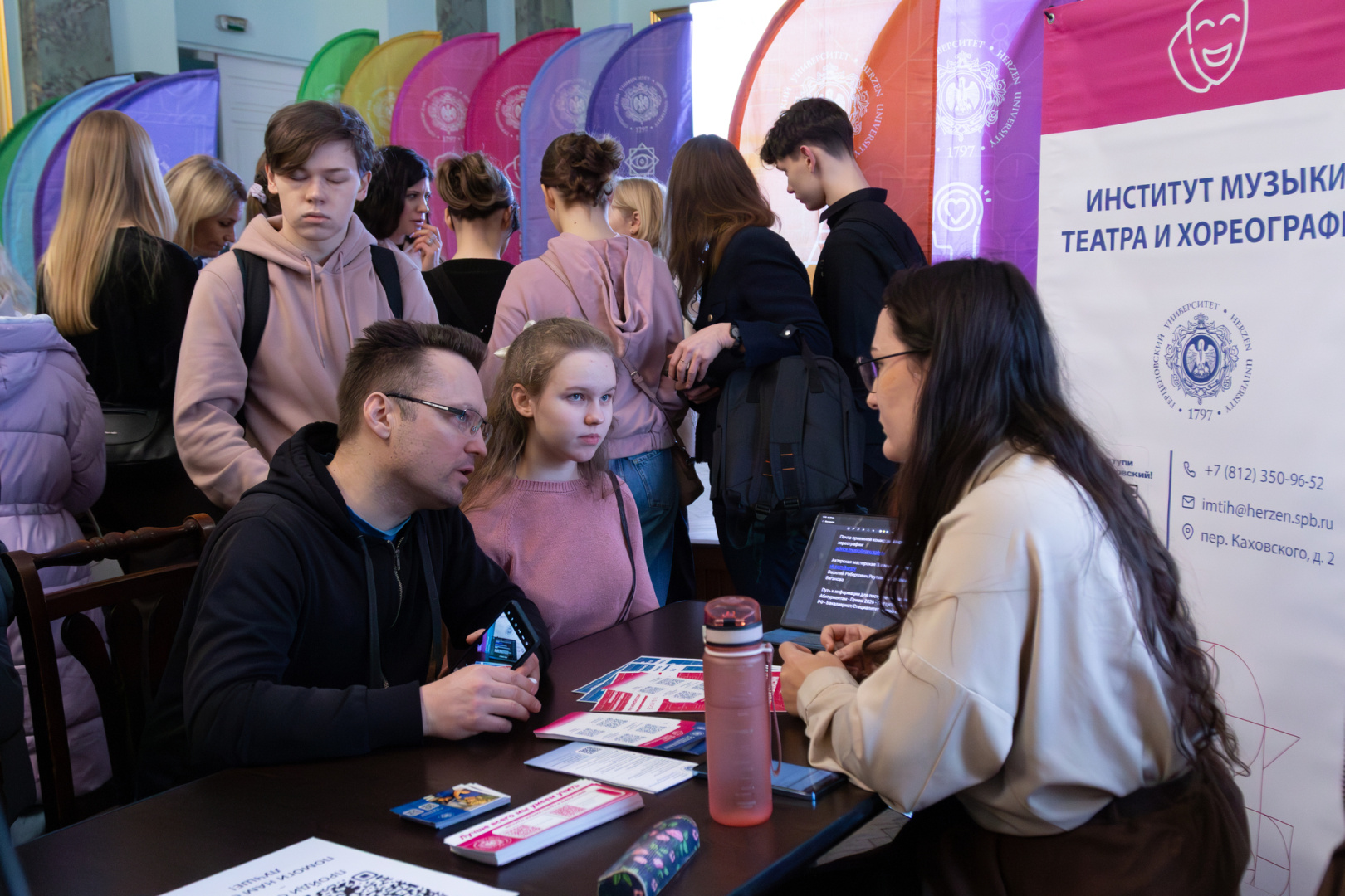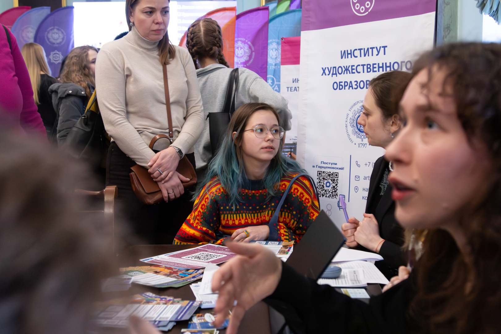Важной частью дня стала возможность получить персональные консультации. Представители центральной приемной комиссии разъясняли нюансы поступления по квотам, особенности зачисления льготных категорий, порядок оплаты при обучении на внебюджетной основе. На одной из консультационных площадок эксперты помогали подобрать образовательные программы на основе перечня сдаваемых ЕГЭ, детально объясняли условия поступления по результатам олимпиад и критерии учета индивидуальных достижений. Особый интерес вызвала возможность сразу на месте записаться на Герценовские внутривузовские олимпиады.