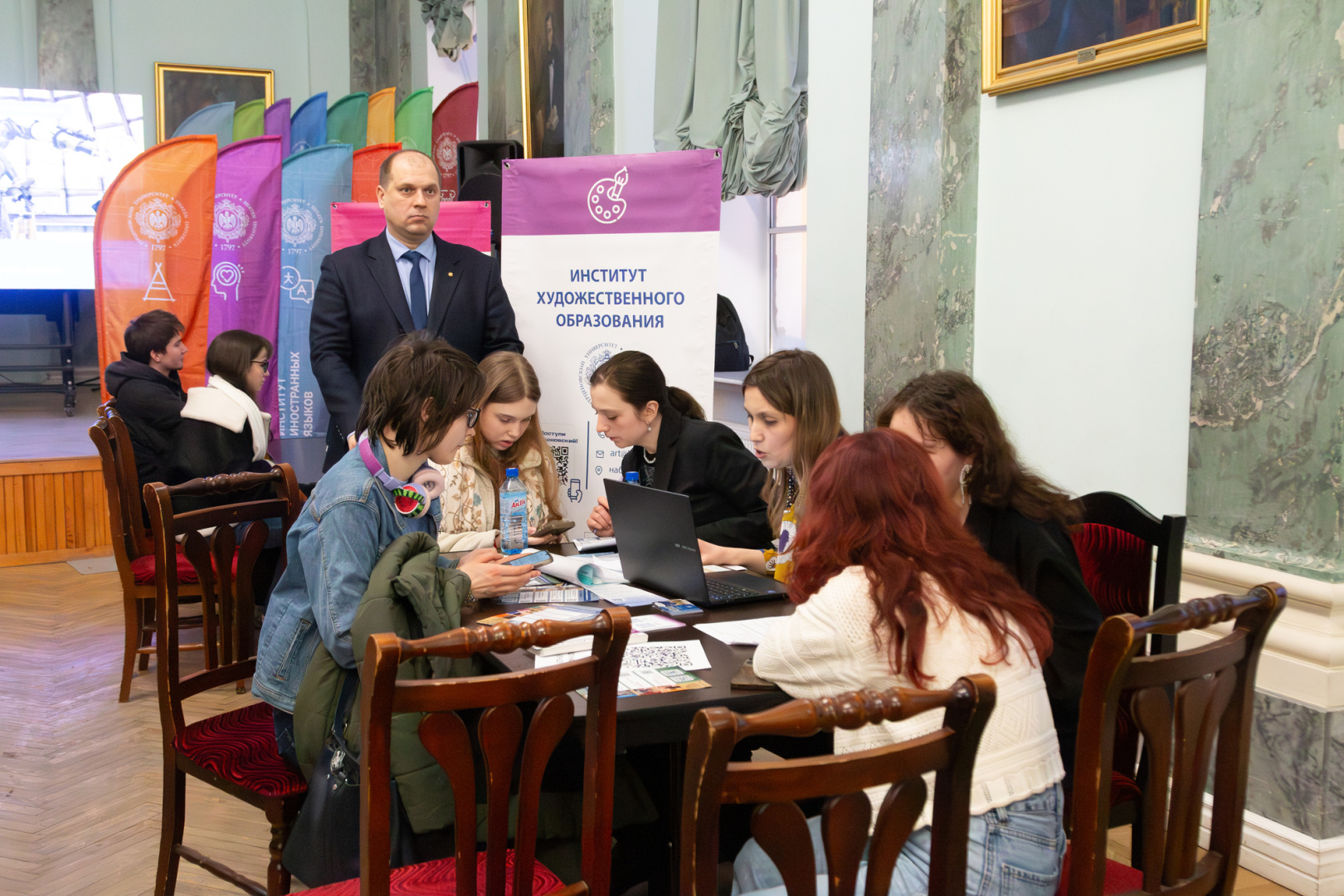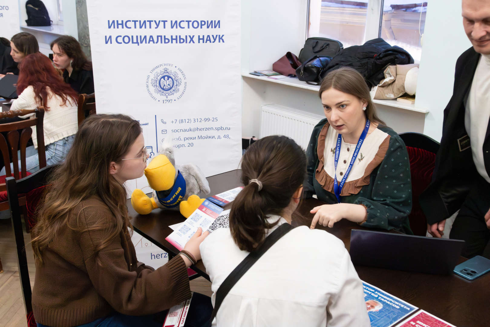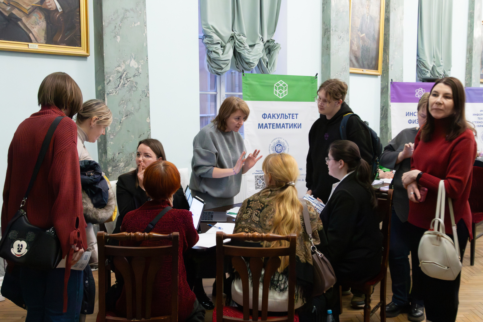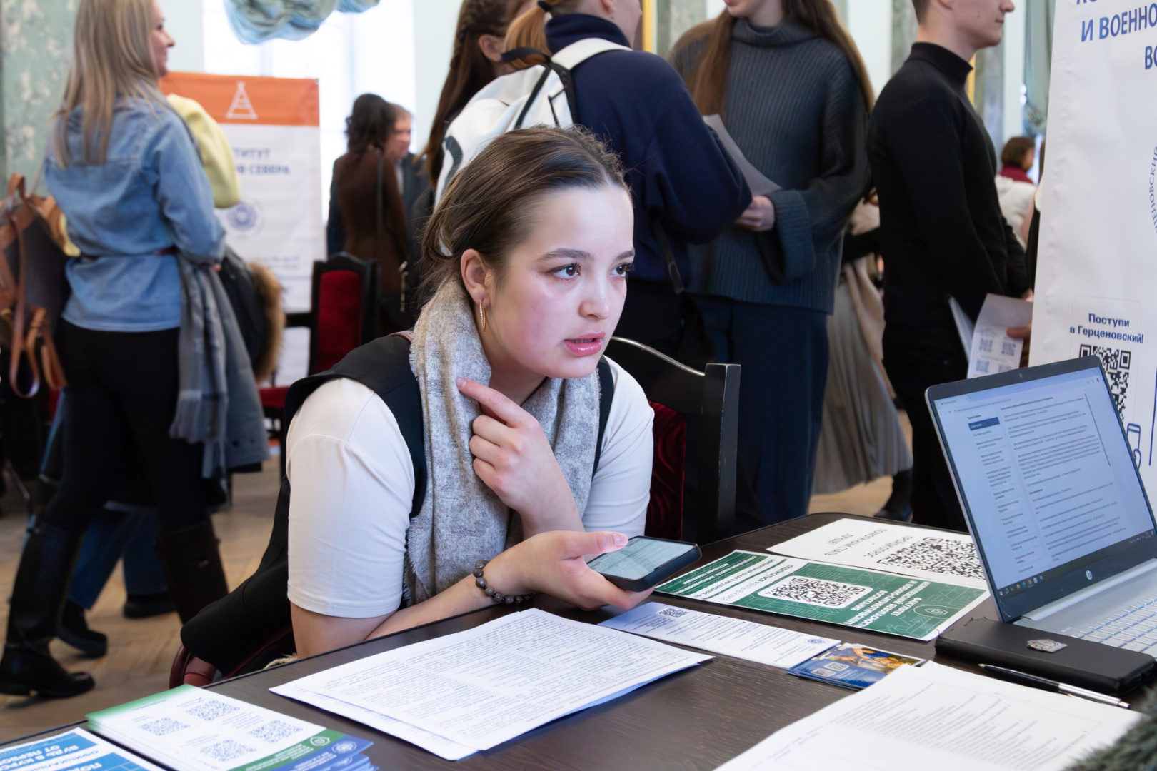 Важной частью дня стала возможность получить персональные консультации. Представители центральной приемной комиссии разъясняли нюансы поступления по квотам, особенности зачисления льготных категорий, порядок оплаты при обучении на внебюджетной основе. На одной из консультационных площадок эксперты помогали подобрать образовательные программы на основе перечня сдаваемых ЕГЭ, детально объясняли условия поступления по результатам олимпиад и критерии учета индивидуальных достижений. Особый интерес вызвала возможность сразу на месте записаться на Герценовские внутривузовские олимпиады.