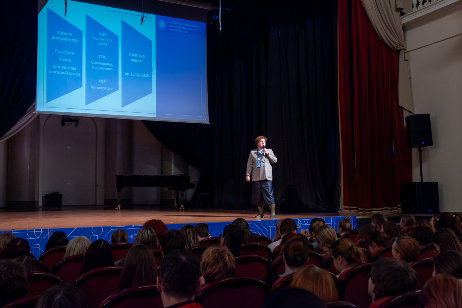 Ректор РГПУ им. А. И. Герцена Сергей Тарасов в своем выступлении отметил: «Выбор университета — ответственный шаг в жизни каждого человека. В Герценовском университете мы стремимся сделать этот процесс максимально комфортным и информативным. Особенность нашего образования — его широкий характер, широкий спектр знаний, позволяющий в будущем выбрать сферу научных и профессиональных интересов. Вторая особенность — это глубокая, серьезная и фундаментальная психолого-педагогическая подготовка. Она дает умение работать в команде, взаимодействовать с другими людьми, что в будущем делает наших выпускников успешными в любой сфере деятельности. Не забываем и о насыщенной студенческой жизни, которая объединяет наших студентов и выпускников в крепкое сообщество большой герценовской семьи. Уверен, каждый сможет найти здесь свое призвание. Желаю всем успехов в выборе будущей профессии и поступлении».