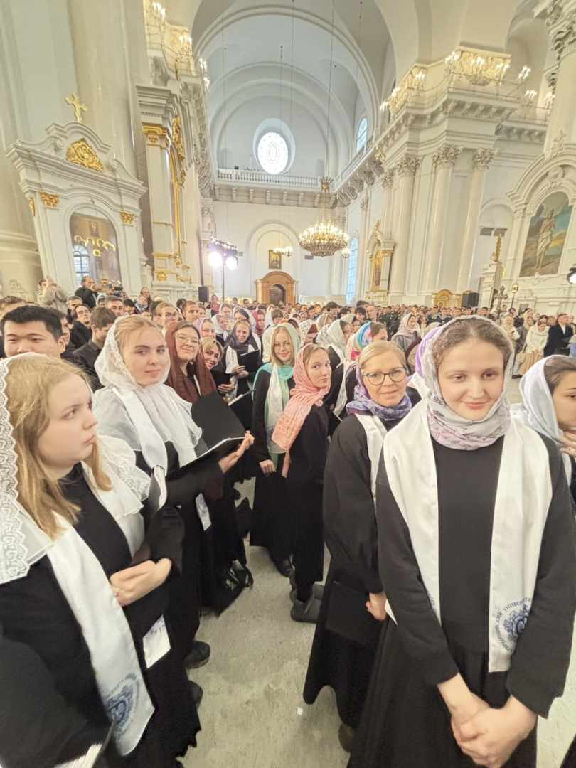 Богослужение впервые сопровождалось совместным пением сводного хора РГПУ им. А. И. Герцена вместе с хором студентов института музыки, театра и хореографии, студенческих хоров Санкт-Петербургского государственного университета, Политехнического университета Петра Великого и Санкт-Петербургской духовной академии.