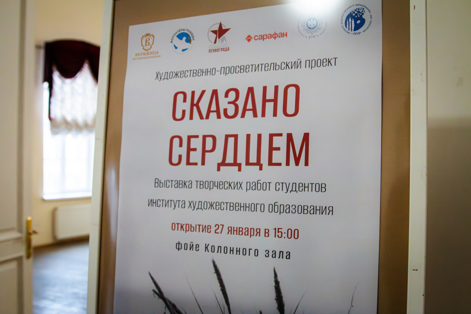 Автор проекта «Сказано сердцем» Денис Веселов — заместитель генерального директора по связям с общественностью ООО «Грань», член российского общества «Знание», Русского географического общества, Императорского Православного Палестинского общества, ветеран общественной организации ветеранов университета ФСИН России, майор внутренней службы. Во время художественно-просветительского проекта студенты РГПУ им. А. И. Герцена, подведомственного Минпросвещения России, несколько раз посетили Государственный мемориальный музей обороны и блокады Ленинграда, пообщались с представителем музея Натальей Солодовник и узнали для себя новые подробности великого подвига.