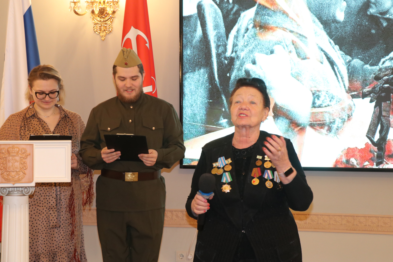 Учащиеся разных вузов представили тематические доклады, в том числе выступил студент юридического факультета РГПУ им. А. И. Герцена Жемал Нормуродов. Кроме того, прозвучали песни и стихотворения военных лет.