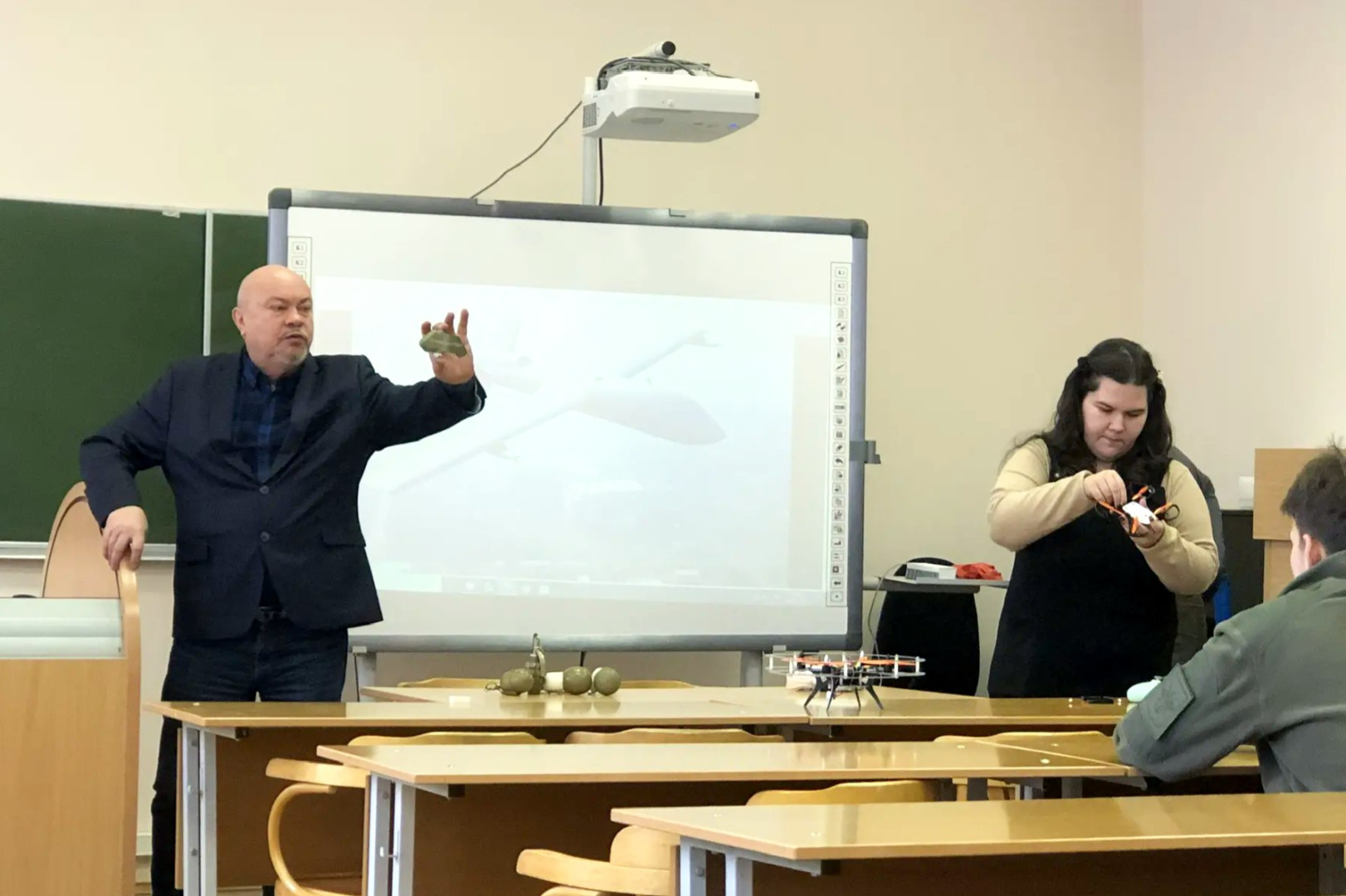 Приглашенный на встречу ветеран специальной военной операции продемонстрировал работу БПЛА, познакомил студентов с правилами оказания первой медицинской помощи и рассказал о возможности службы по контракту в новых элитных войсках беспилотных систем РФ. Он отметил, что это не только престижно, но и помогает быстро овладеть современными высокотехнологичными специальностями, внести осознанный вклад в обеспечение обороноспособности государства.