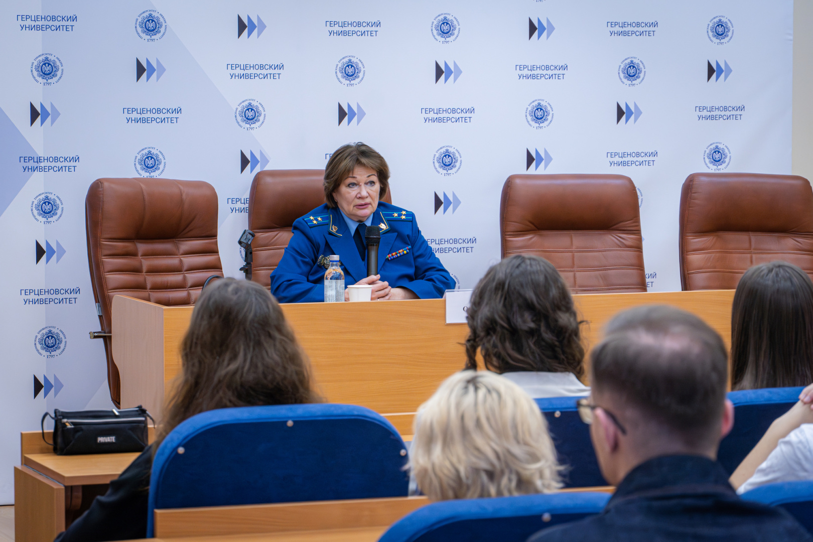 Начальник отдела по надзору за исполнением законов о несовершеннолетних прокуратуры Санкт-Петербурга, выпускница РГПУ им. А. И. Герцена Ольга Качанова обсудила со студентами вуза вопросы профилактики нарушений в школьной среде. Эксперт объяснила, как выявить неблагополучие на ранних этапах, представила актуальные методики превентивной работы и обозначила, как педагоги и правоохранительные органы совместно обеспечивают защиту прав детей.