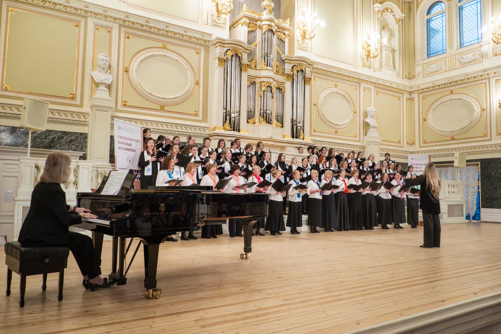 В Государственной академической капелле им. М. А. Глинки состоялось торжественное закрытие XVII Всероссийского фестиваля-конкурса «Герценовские хоровые ассамблеи – 2026». В этом году событие объединило 53 хоровых и вокальных коллектива из 12 городов России: Москвы, Санкт-Петербурга, Брянска, Гатчины, Киришей, Дубны, Королева, Сергиева Посада, Кинеля, Бикина, Набережных Челнов, Нижнего Новгорода, Томска и Энгельса. Организатором фестиваля является институт музыки, театра и хореографии РГПУ им. А. И. Герцена.