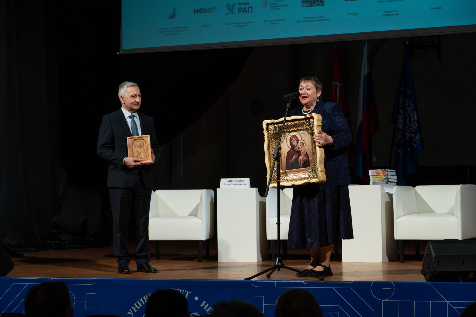 В рамках открытия форума директор Новолеушковской школы-интерната с профессиональным обучением Татьяна Курасова преподнесла в дар Герценовскому университету икону Сергия Радонежского и икону Божией Матери «Воспитание», которые займут место в храме святых первоверховных апостолов Петра и Павла при РГПУ им. А. И. Герцена. Кроме того, в дар вузу вручены экземпляры книг, посвященных Антону Семеновичу Макаренко, и сигнальный экземпляр книги «Разговор о воспитании» А. С. Макаренко. Все они будут переданы в фундаментальную библиотеку имени императрицы Марии Федоровны.