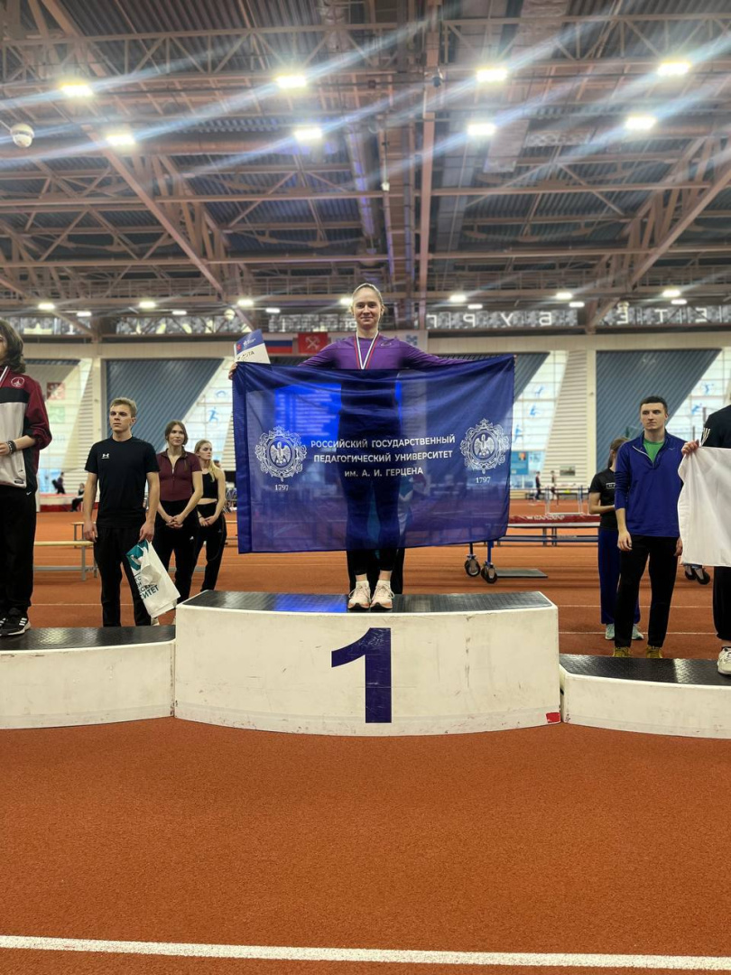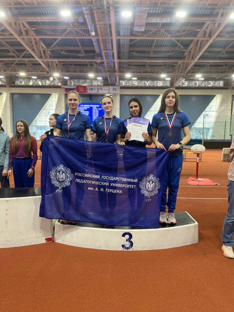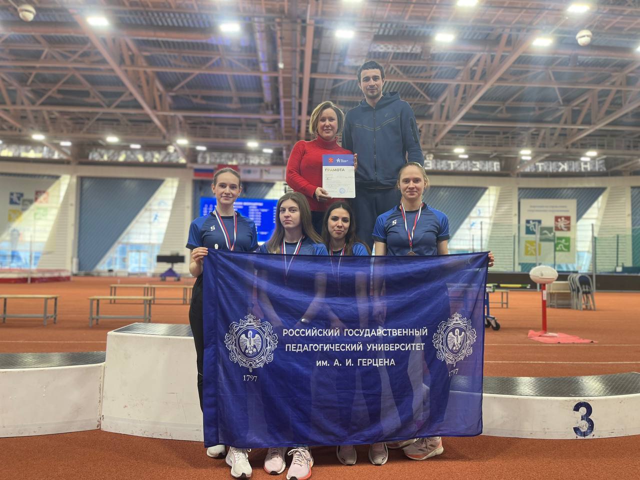 Золотые медали в копилку РГПУ им. А. И. Герцена принесли студентки института физической культуры и спорта Ксения Псаломщикова (прыжки в высоту) и Серафима Дормакович (бег на 60 м с барьерами). Серебряные медали завоевали студентки этого же института: Мария Щербакова (пятиборье) и Валерия Воронина (бег 2000 м с препятствиями). Бронзовыми призерами чемпионата стали Валерия Воронина в беге на 3000 м и участницы женской эстафеты 4×200 м, в состав которой вошли учащиеся института физкультуры и спорта Серафима Дормакович, Мария Щербакова, Полина Борина и студентка института иностранных языков Арина Чибизова.