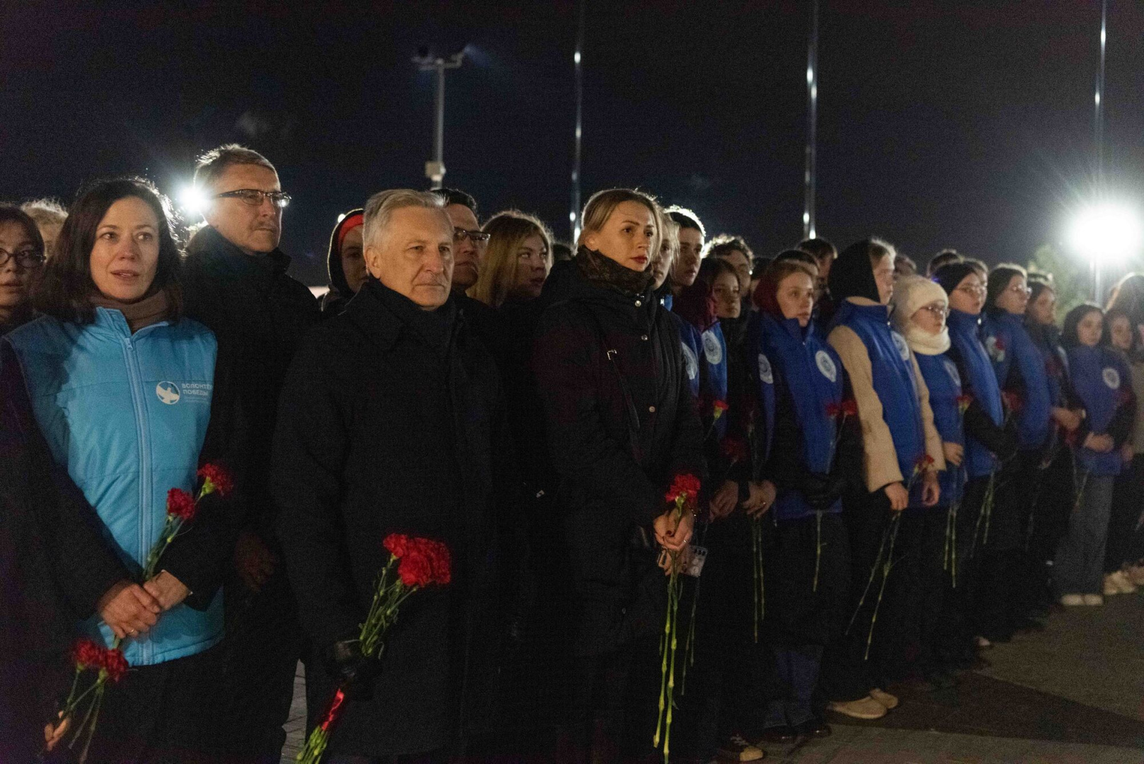 У Мемориального комплекса мирным жителям СССР — жертвам нацистского геноцида под Гатчиной в ночь на 19 апреля прошло торжественно-траурное мероприятие, посвященное Дню памяти жертв геноцида советского народа. В церемонии приняли участие представители органов власти, силовых структур, общественности, участники специальной военной операции, студенты и школьники.
